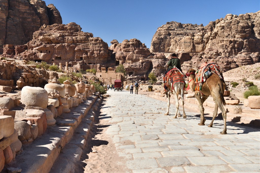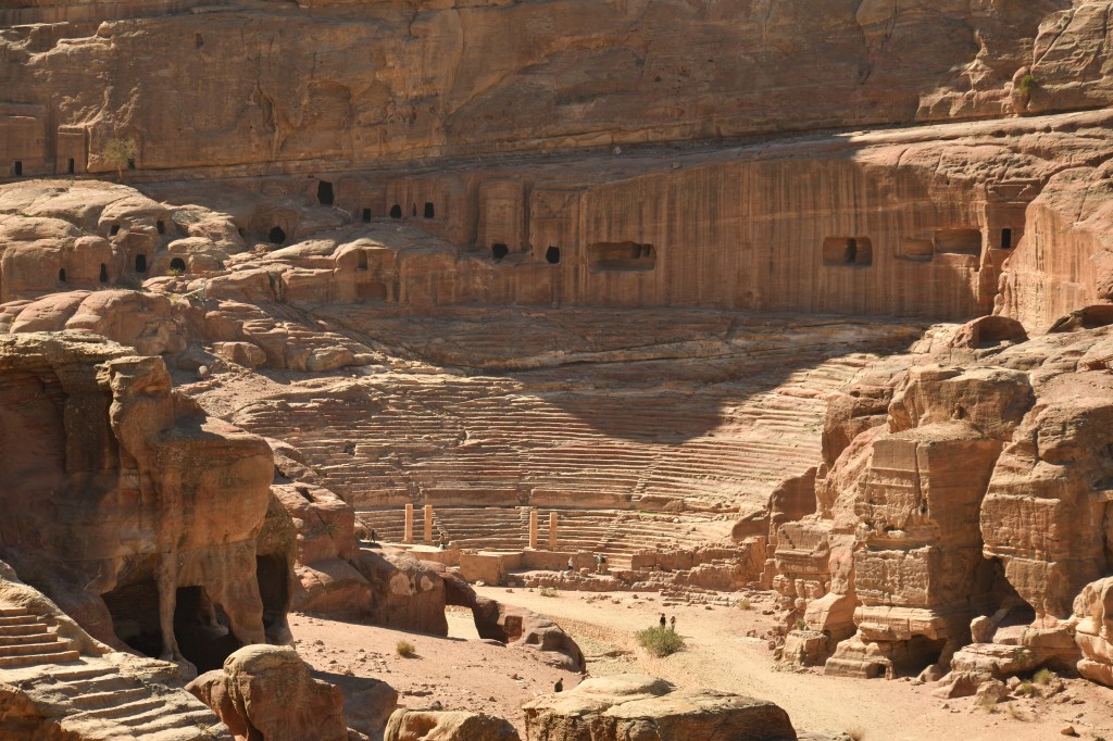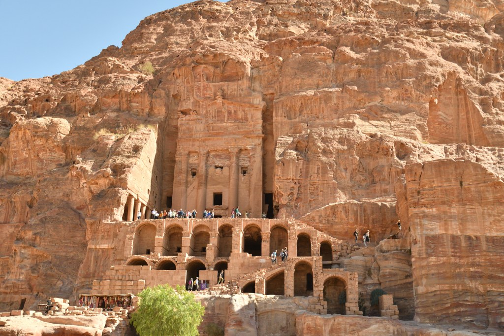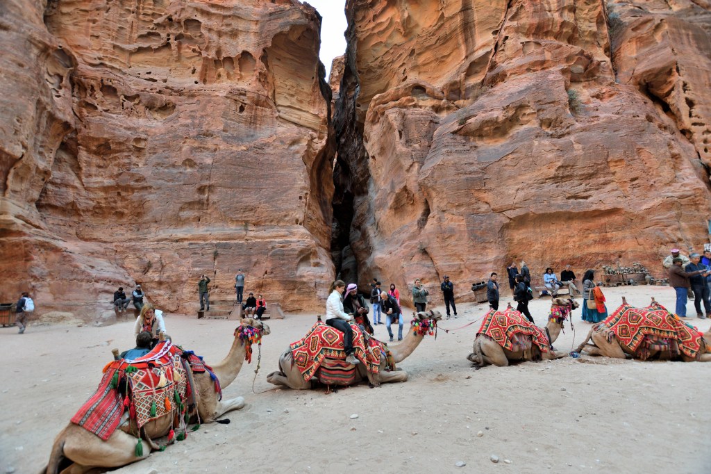 Dann natürlich die Bauwerke der Nabatäer, Petra und little Petra, 20 km auseinander in herrlicher Gegend. Die alten Karawanenstützpunkte. Ich kann mir sehr gut vorstellen, wie die Karawanen durch diese bizarren Landschaften gezogen sind, um begehrte Güter von Nord nach Süd und umgekehrt zu transportieren. Was für ein brüllen der Dromedare muss das gewesen sein, der Geruch der Tiere und der Gewürze. Was muss man in den Karawansereien alles zu erzählen und zu berichten gehabt haben?! Eines der sieben Weltwunder – Petra. Lohnenswert allemal, man wird es nicht vergessen. Die beste Zeit ist 9 Uhr. Das Licht in der Schatzkammer kommt gegen 10Uhr. Mein frühes Aufstehen und der Drang vor allen da zu sein war überflüssig.