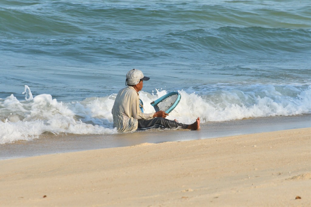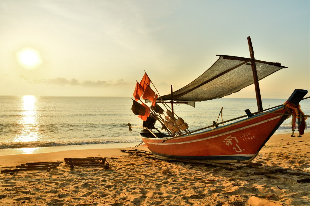 Die Fähre von Koh Samui spuckt mich und Henry wieder an Land, aufs Festland. Einem Tip folgend, fahre ich wieder ein Stück südlich, nur ein paar Kilometer. Hier soll es Strände geben, die wenig besucht sind und denen auf Koh Samui in nichts nachstehen. Ich bin dankbar und beeindruckt. Palmen, ein paar Fischer und kilometerlanger Strand.