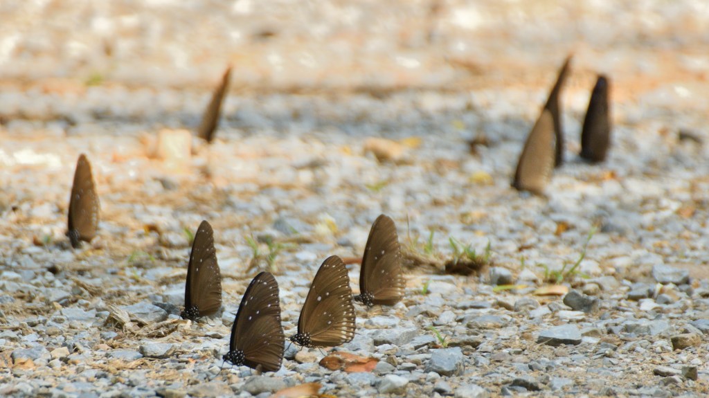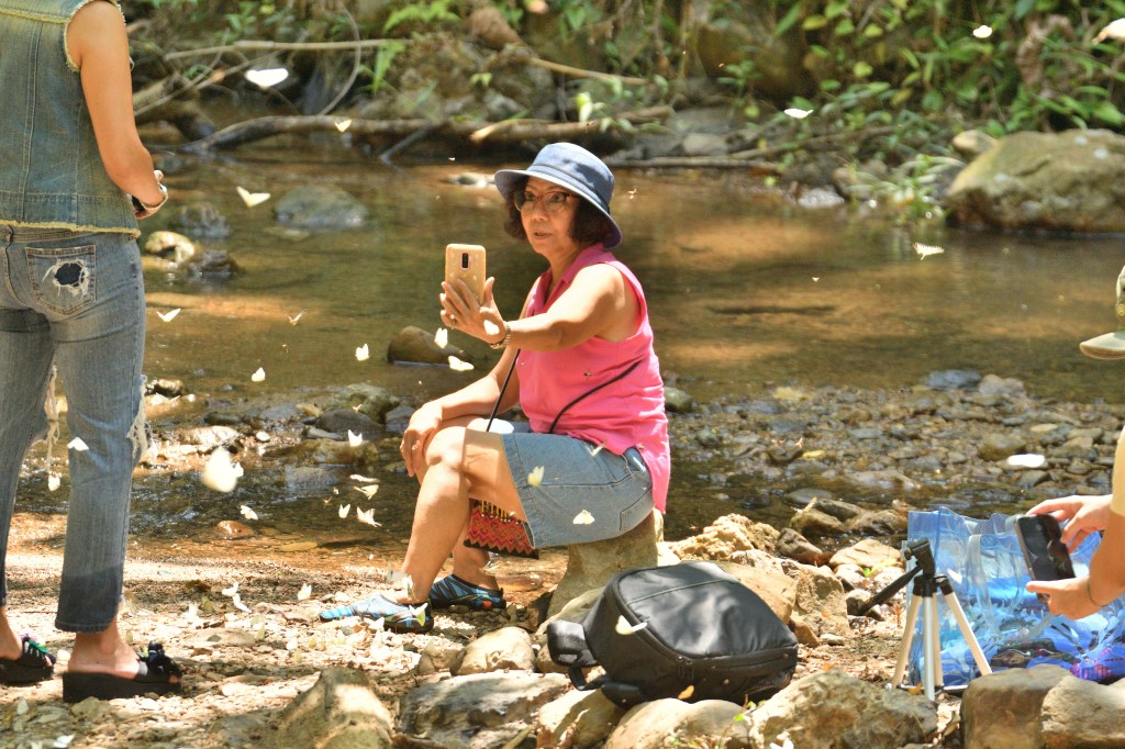 Kaeng Krachan Nationalpark, Myanmar ist in Sichtweite. Nachts will ein Elefant über den Campingplatz, Keine 50m von mir entfernt. Vergess ich nie, diesen Anblick und die Bemühungen der Ranger ihn zu bewegen den Platz zu verlassen. Vom Gipfel aus, ein atemberaubender Blick ins wolkenverhangene Tal am Morgen. Ich sehe einen riesigen Doppelhornvogel (Hornbill), der 10m von mir entfernt mit Getöse in einen kleinen Baum segelt, und in aller Ruhe die roten Früchte nascht. Auf dem Weg zurück ins Tal, hunderte von Schmetterlingen, die die Flußdurchfahrten belagern. Sie nehmen die ersten warmen Strahlen der Sonne auf. An Tieren findet man hier alles von Rang und Namen. Neben den Elefanten gibt es Büffel, Tiger, Panther, Leoparden, Bären, Tapire und viele weitere Vegetarier. Allein zu wissen, das es sie hier gibt ist schon cool, auch wenn mir außer einer Antilope und den Affen kein weiterer Fellträger vor die Linse kommt.