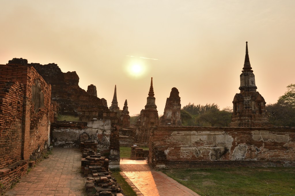 Zum Abschluß des mittleren Abschnitts gibt es nochmal alte Steine im Historischen Park von Aytthaya, der alten Hauptstadt des Königreichs. Tempelanlagen auf einer Insel mitten in der Stadt, ein in Wurzelwerk eingewachsener Bhuddakopf bieten wieder jede Menge Fotomotive. Es erinnert mich ein wenig an Angkor Wat in Kambodscha, nur viel kleiner.