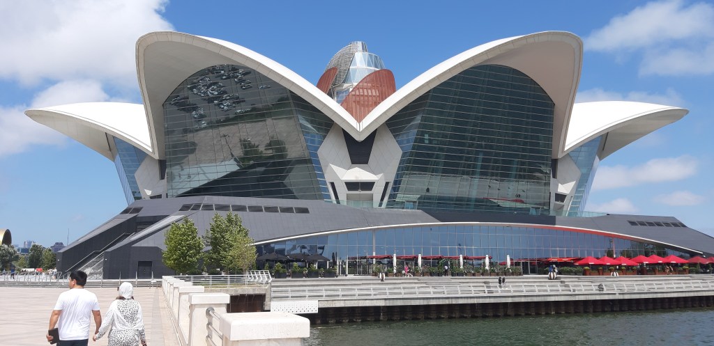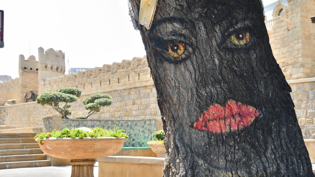Bin ja eher der Outdoor Fan, mag Städte nur bedingt, aber dieses Baku gefällt mir. Ich wollte auf dem Parkplatz übernachten, aber er füllt sich zusehends je später es wird. Die Restaurants sind gut besucht, es ist lauschig warm und die Lichtspiele auf den drei Flammen machen den Ort zu etwas Besonderem. Mir wird es aber zu viel in meiner Ecke. Kurz vor Mitternacht fahre ich raus ans Meer und verbringe die Nacht dort. Und weil es so schön ist gleich eine zweite hinterher. Dann nochmal nach Baku, die Altstadt anschauen.
