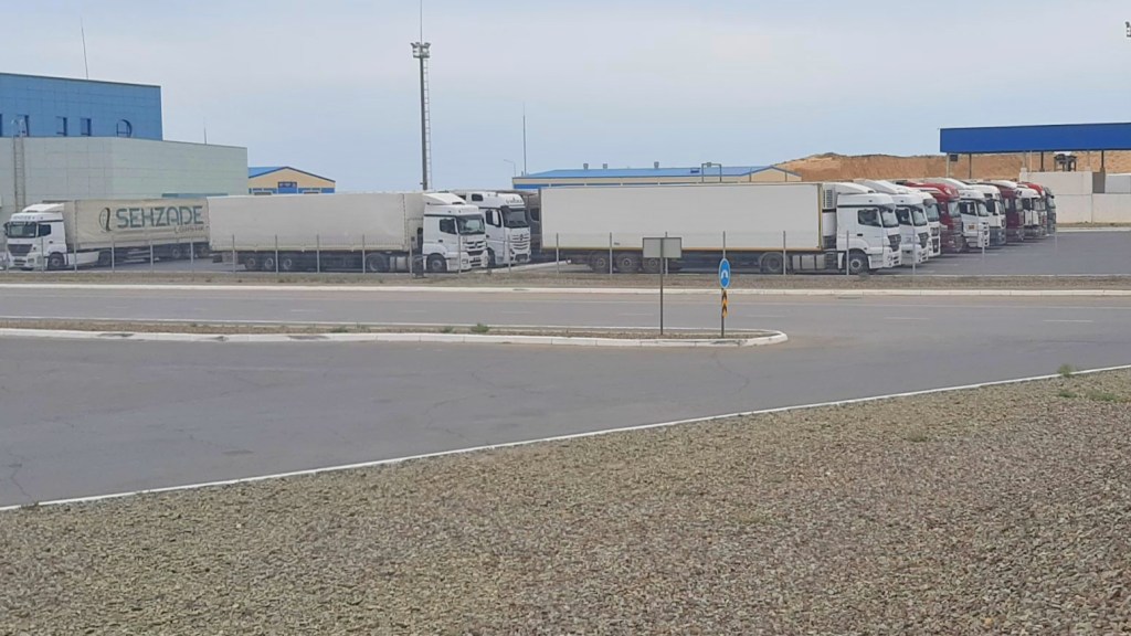 Endlich im Land nach anstrengendem Nachtflug und Taxifahrt zum Hafen Alat.  Aqtau in Kasachstan und Alat in Aserbaidschan, Schlüsselpositionen auf der Transkaspischen Handelsroute.