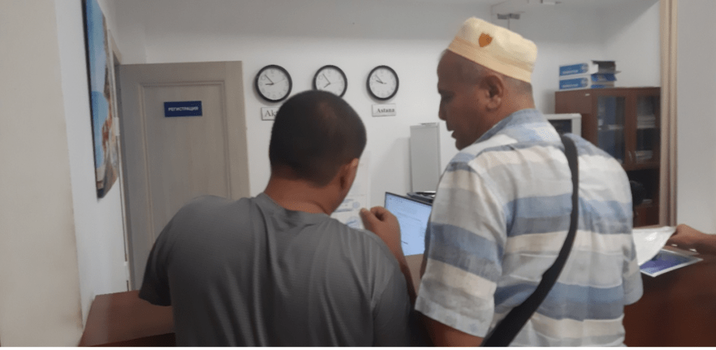 Das Visum habe ich online am 20.7. am Aral See beantragt, ging auch sehr fix. Fühlte sich nach einer runden Sache an. Jetzt bin ich am 25.7. im Hafen, habe den Flug gebucht, und das Visum ist immer noch nicht da. Am Nachmittag dann die Erlösung. Im Hotel lasse ich das Visum ausdrucken.