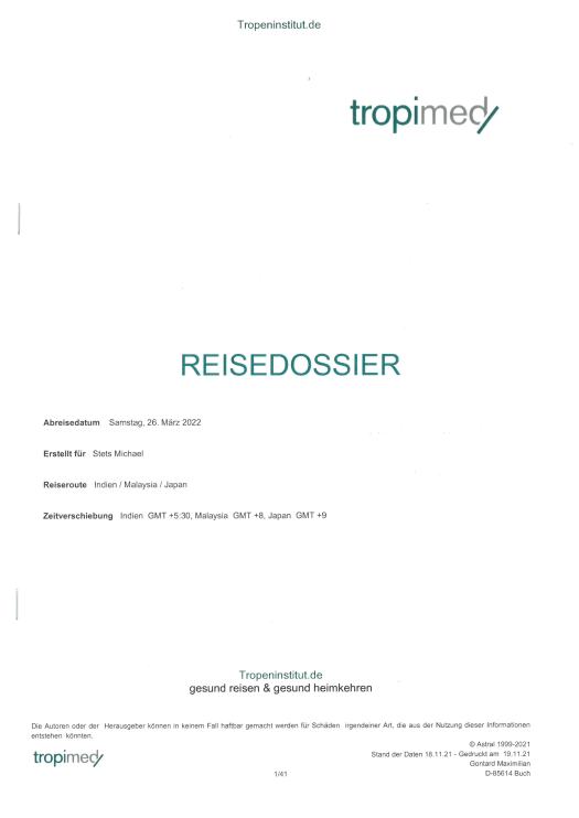 Mit diesen Angaben habe ich mich mit meinem Arzt beraten. Zusammen haben wir dann die Umsetzung besprochen. Je früher man die Planung beginnt desto besser ist es. Hepatitis benötigt 6 Monate für den vollen Schutz.